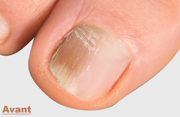 Des résultats visibles dès les premières semaines avec un éclaircissement progressif de l'ongle atteint.