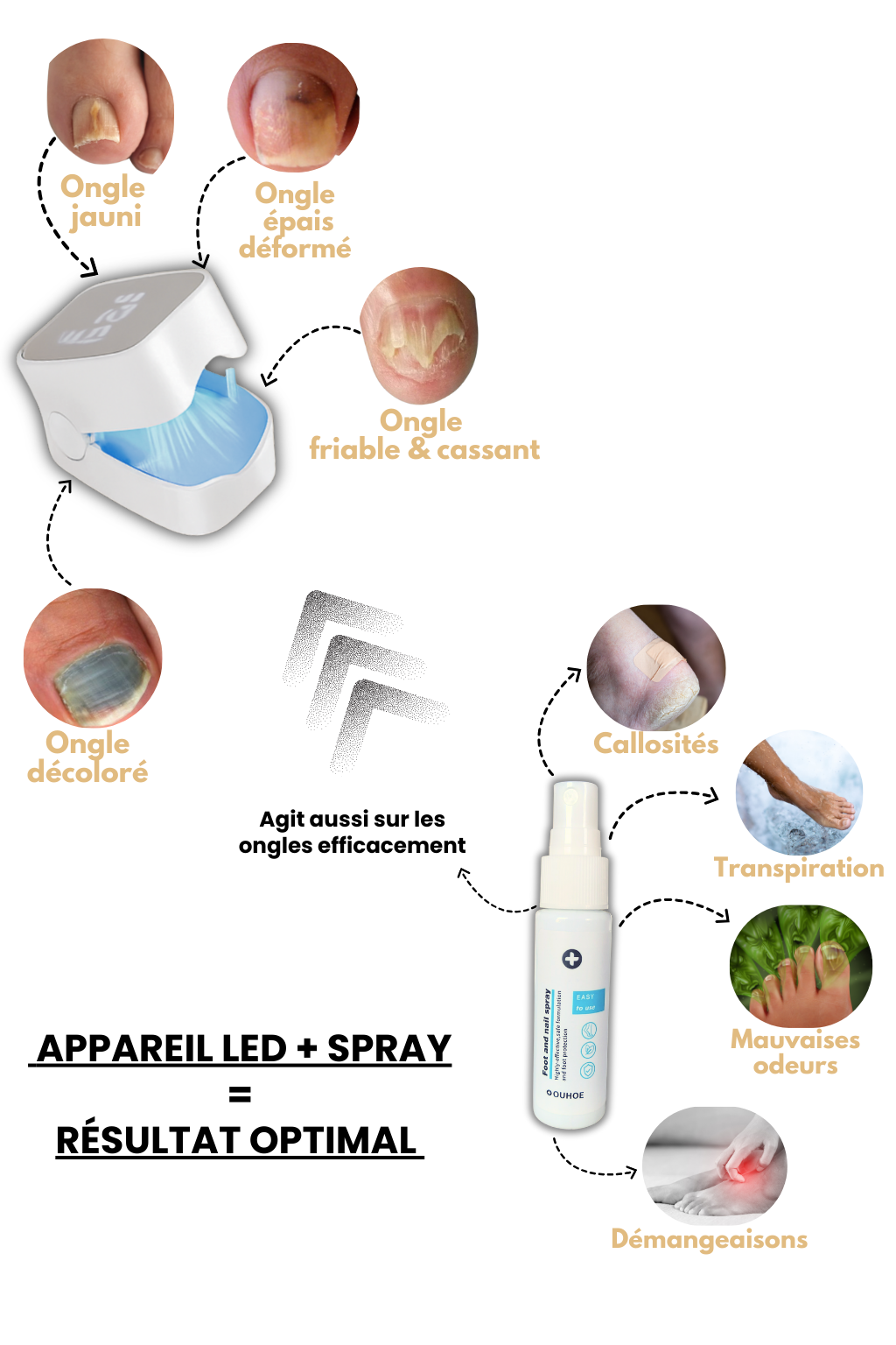 Absolument. Le spray est efficace seul, notamment en prévention ou pour les débuts de mycose. L’ajout de l’appareil LED permet simplement d’accélérer le processus de guérison.