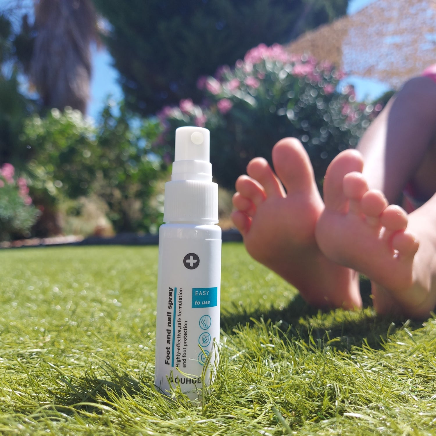 - Pulvérisez sur l’ongle et autour, 2 fois par jour (matin et soir).